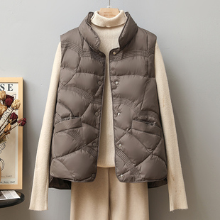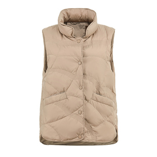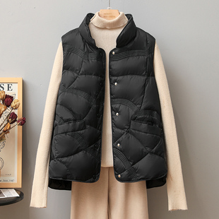 秋冬新款 白鸭绒外套女轻薄羽绒马甲女立领祥云压纹马夹背心女 短款