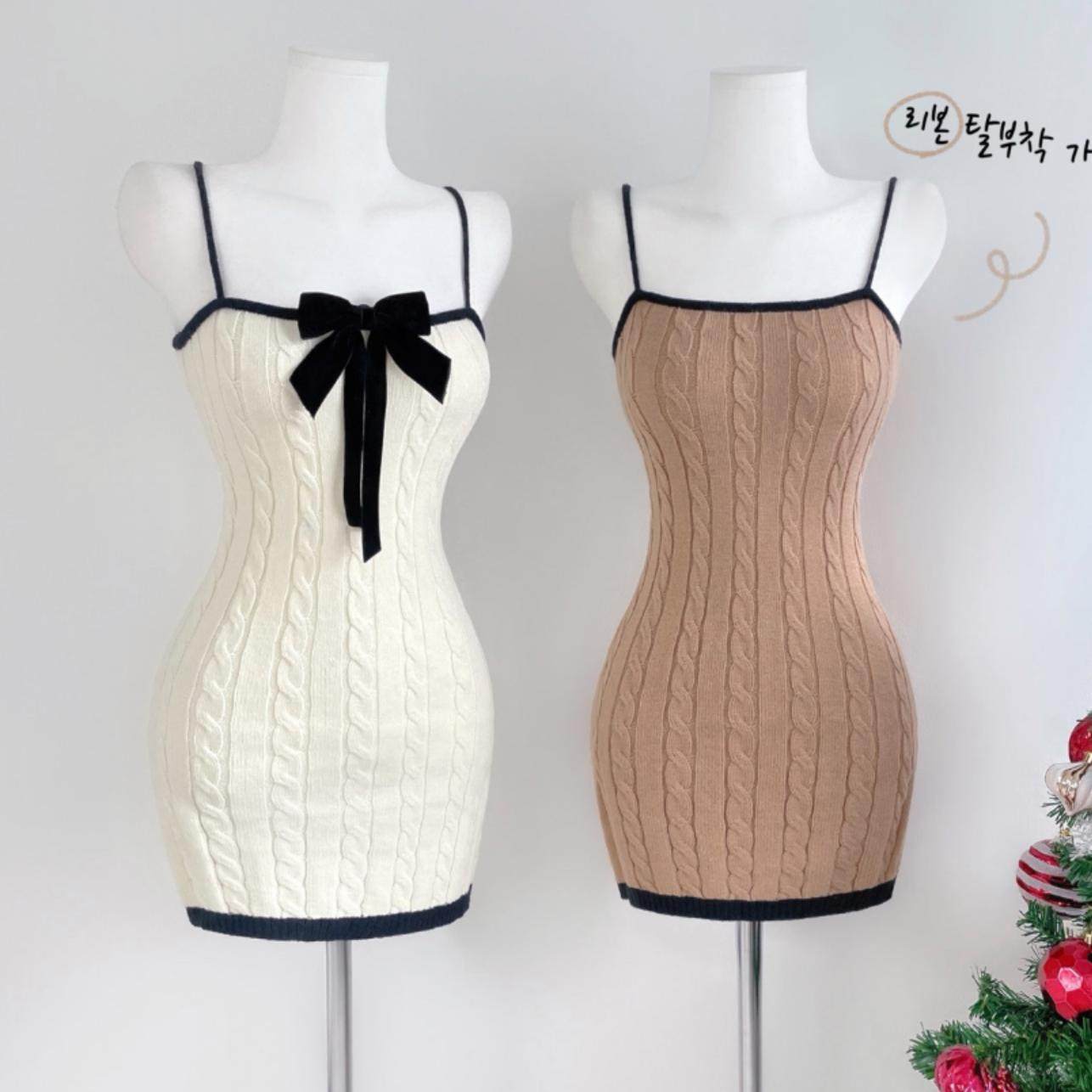 辛子韩国代购 连衣裙针织蝴蝶结包臀连衣裙
