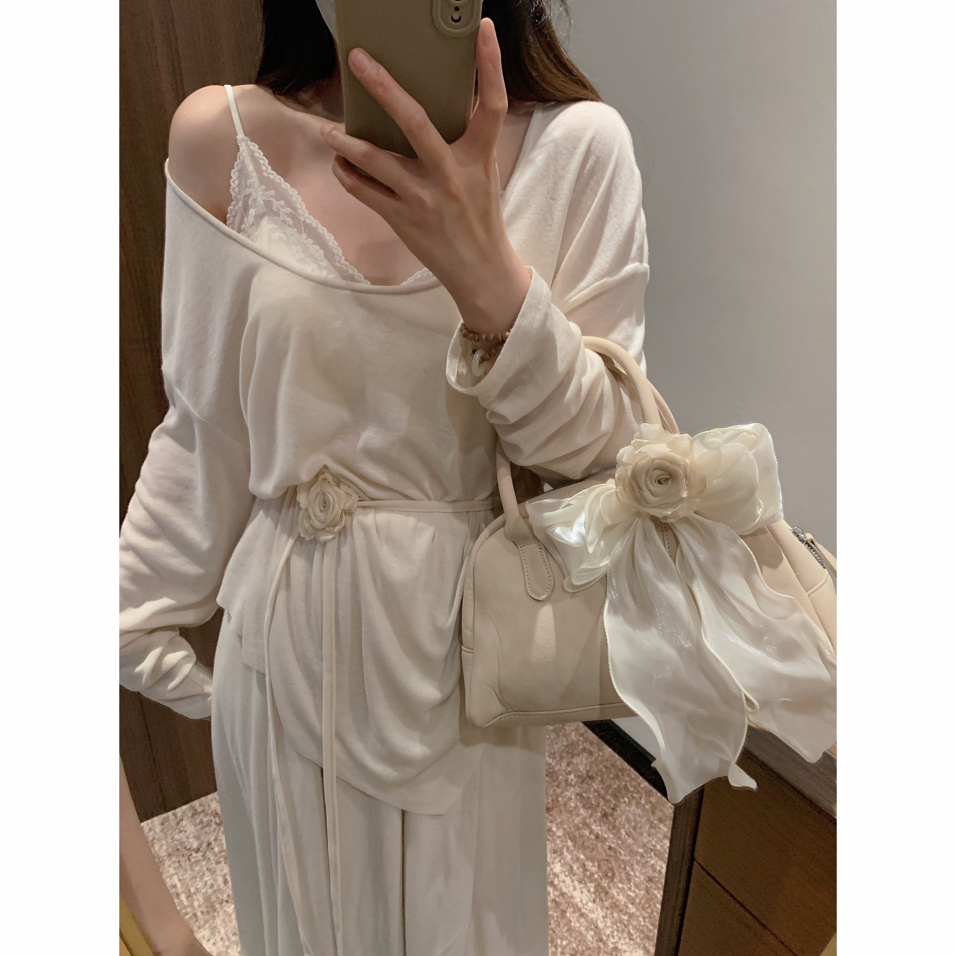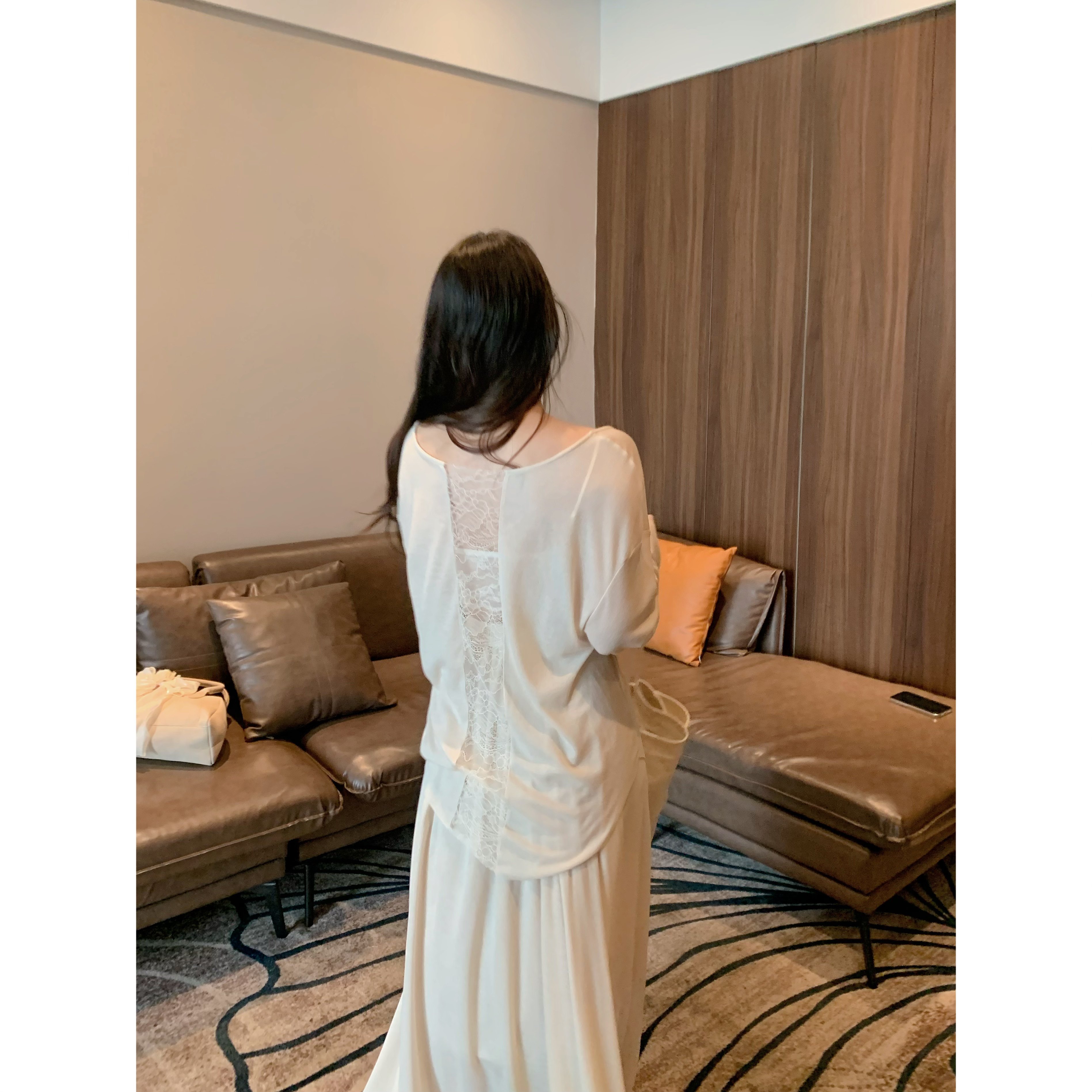 11.9开89元 后背拼接蕾丝上衣 3件 维纳斯气质套裙 松紧腰 8.28