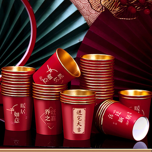 2026马年春节金箔纸杯家用加厚喜庆一次性新年过年货杯子红色水杯