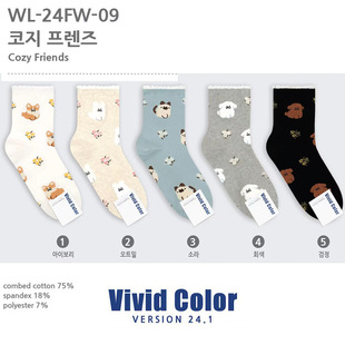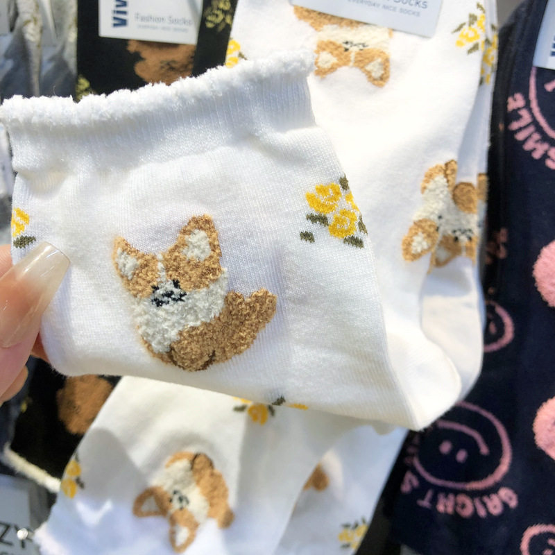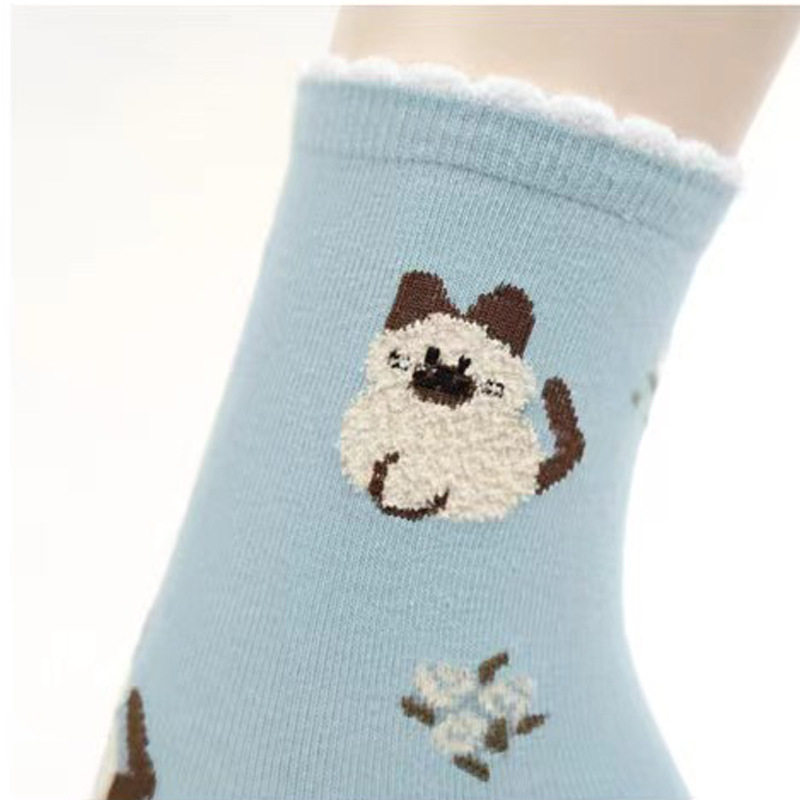 韩国vivid秋季 袜子女可爱植绒卡通猫咪棉袜木耳花边中筒女袜 新款