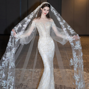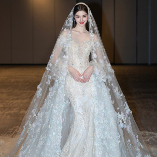 重工鱼尾拖可拆卸修身 2024新款 显瘦新娘婚纱礼服拖 拜占庭女神