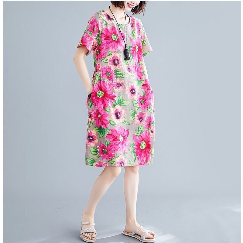 胖mm棉麻中长款 妈妈装 连衣裙女夏韩版 女装 裙子 显瘦大码 2024新款
