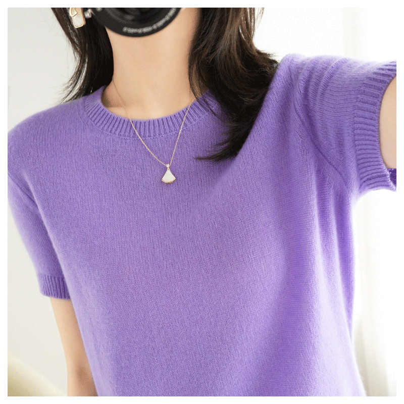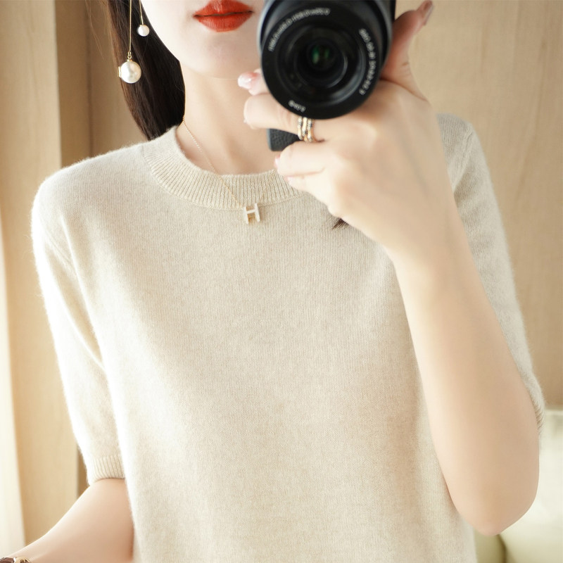 清仓39元 宽松毛衣打底衫 针织短袖 2025春秋新款 女圆领羊绒衫 断码