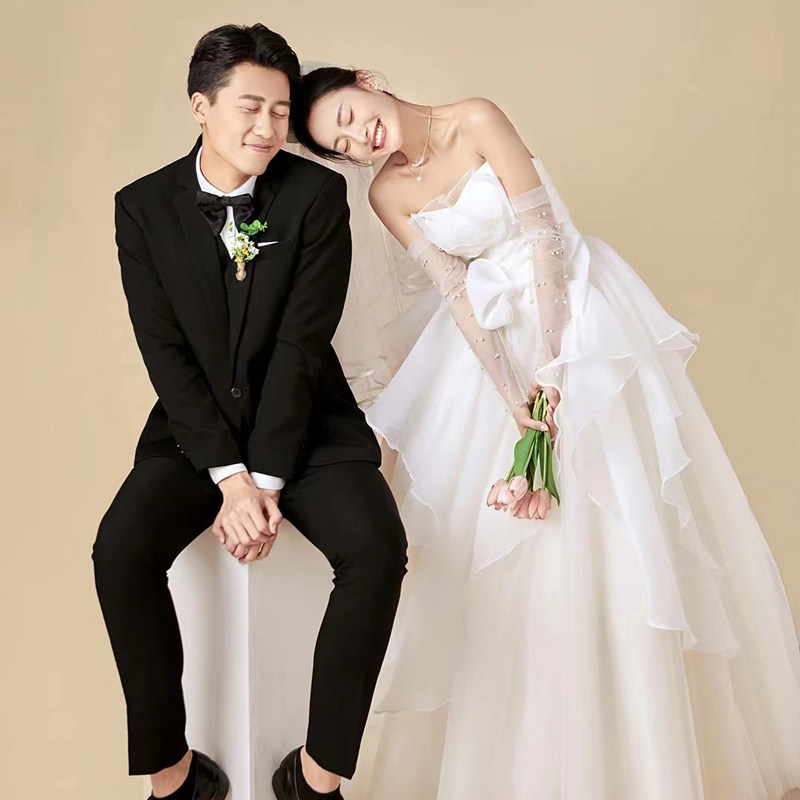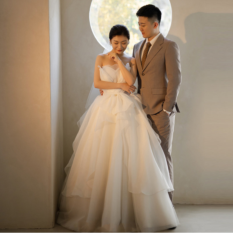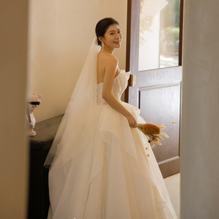 2025新款 婚纱抹胸简约显瘦超仙森系新娘出门纱孕妇齐地公主蓬蓬裙