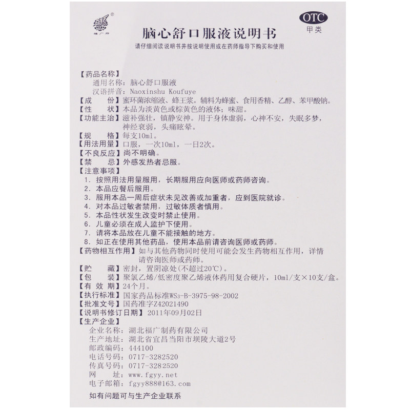10ml 低至3.6元 脑心舒口服液 福广府 10支 盒