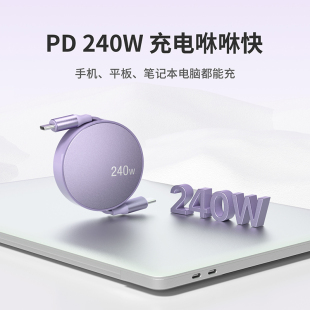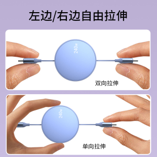 单双向拉伸双type c对公车载伸缩carplay数据线适用华为苹果iPhone15手机平板笔记本电脑pd快充240w充电线