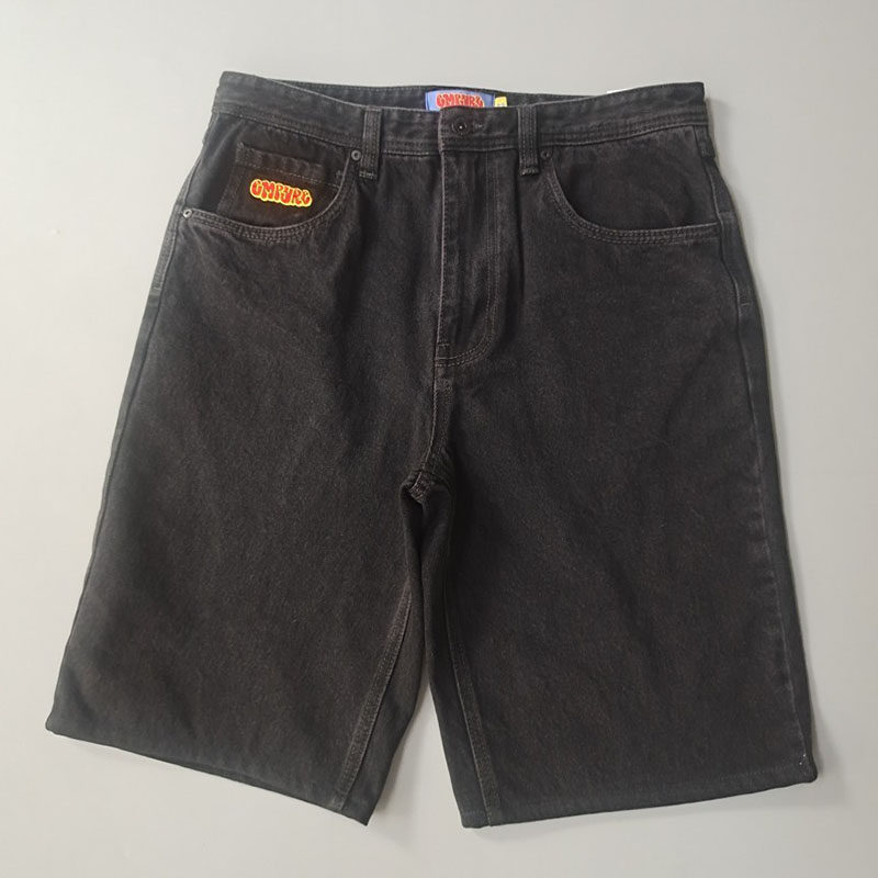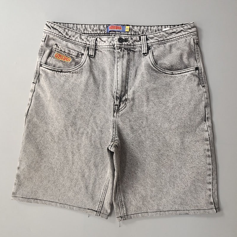 宽松复古潮牌纯色休闲五分裤 滑板牛仔短裤 男夏季 牛仔短裤 水洗经典