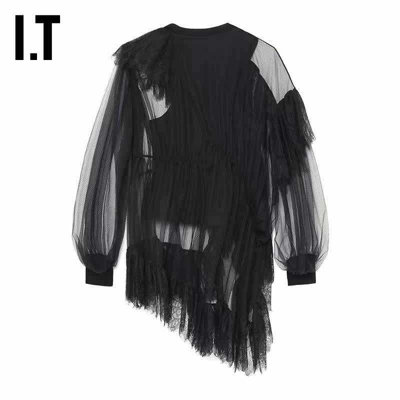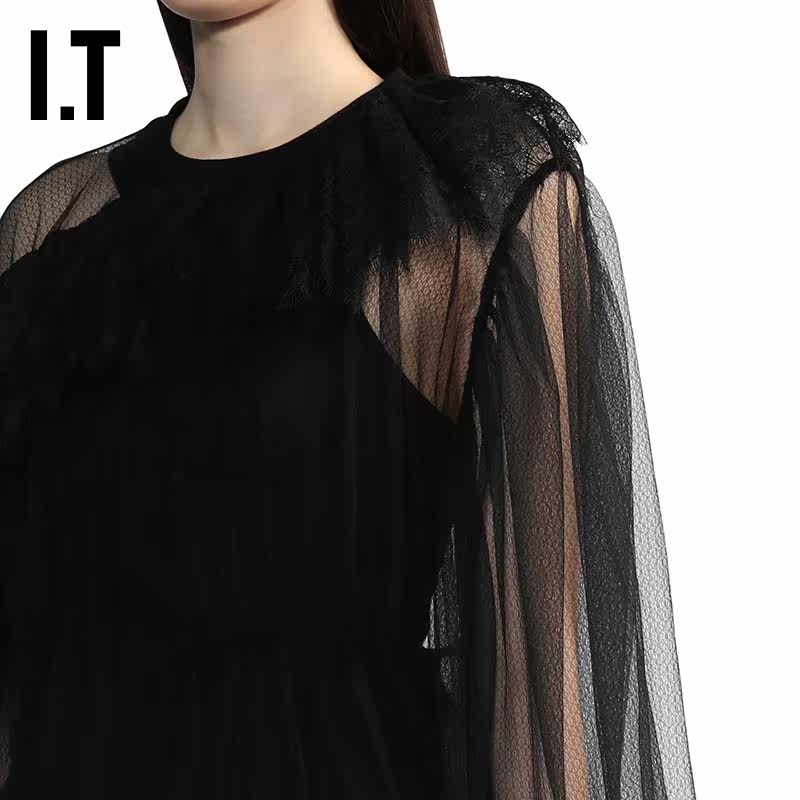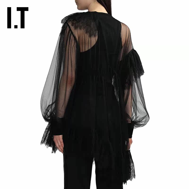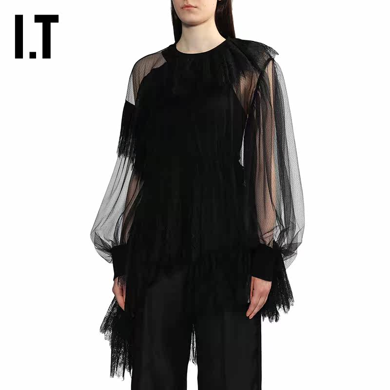优雅别致蕾丝拼接透视罩衫 宽松薄纱上衣新品 SST13XK GOEN.J女装