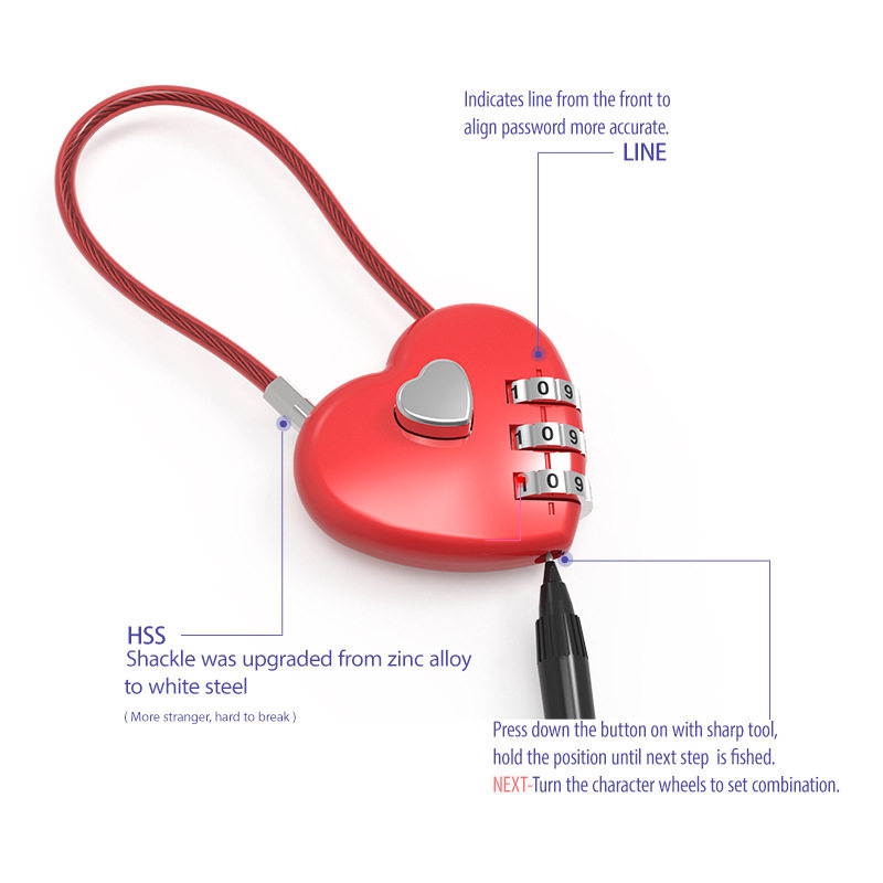 密码 锁头盔自行车防盗钢丝挂锁电动车行李箱车筐柜子储物宿舍链条