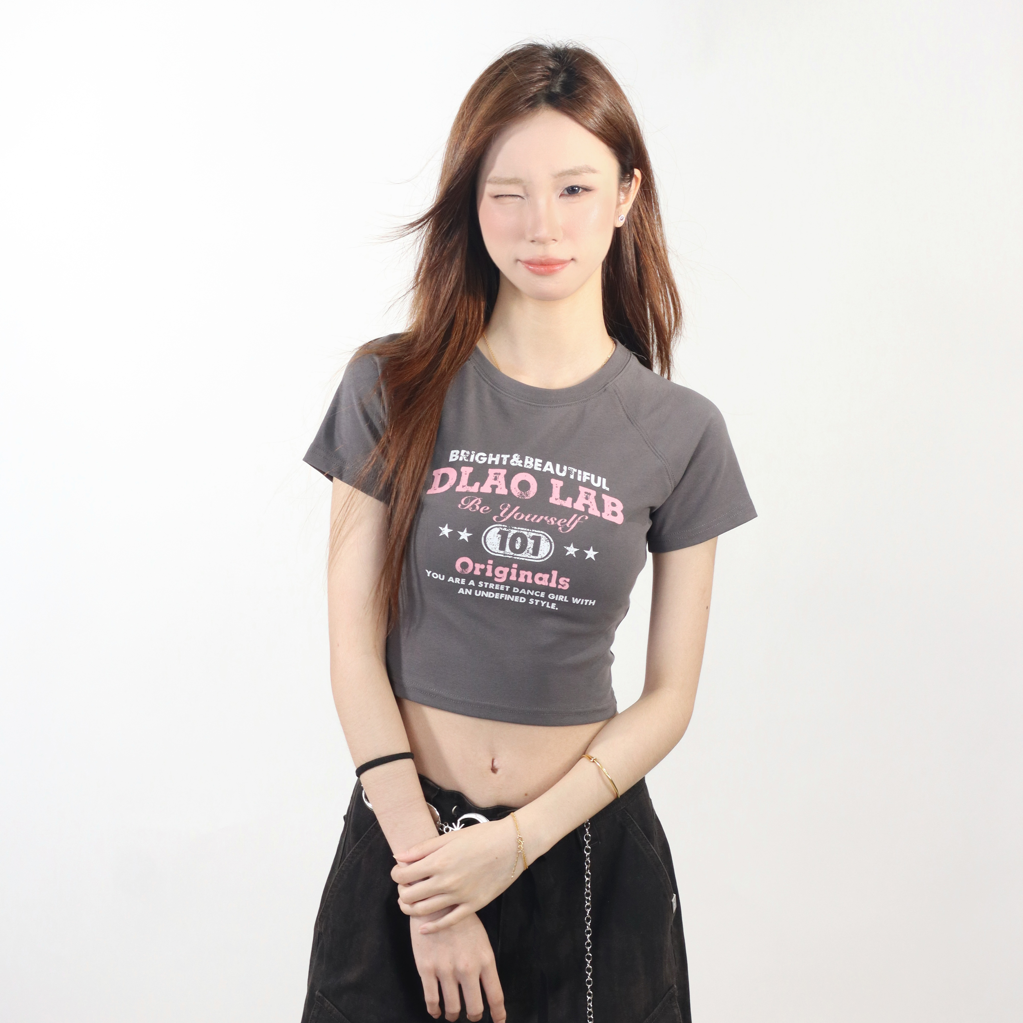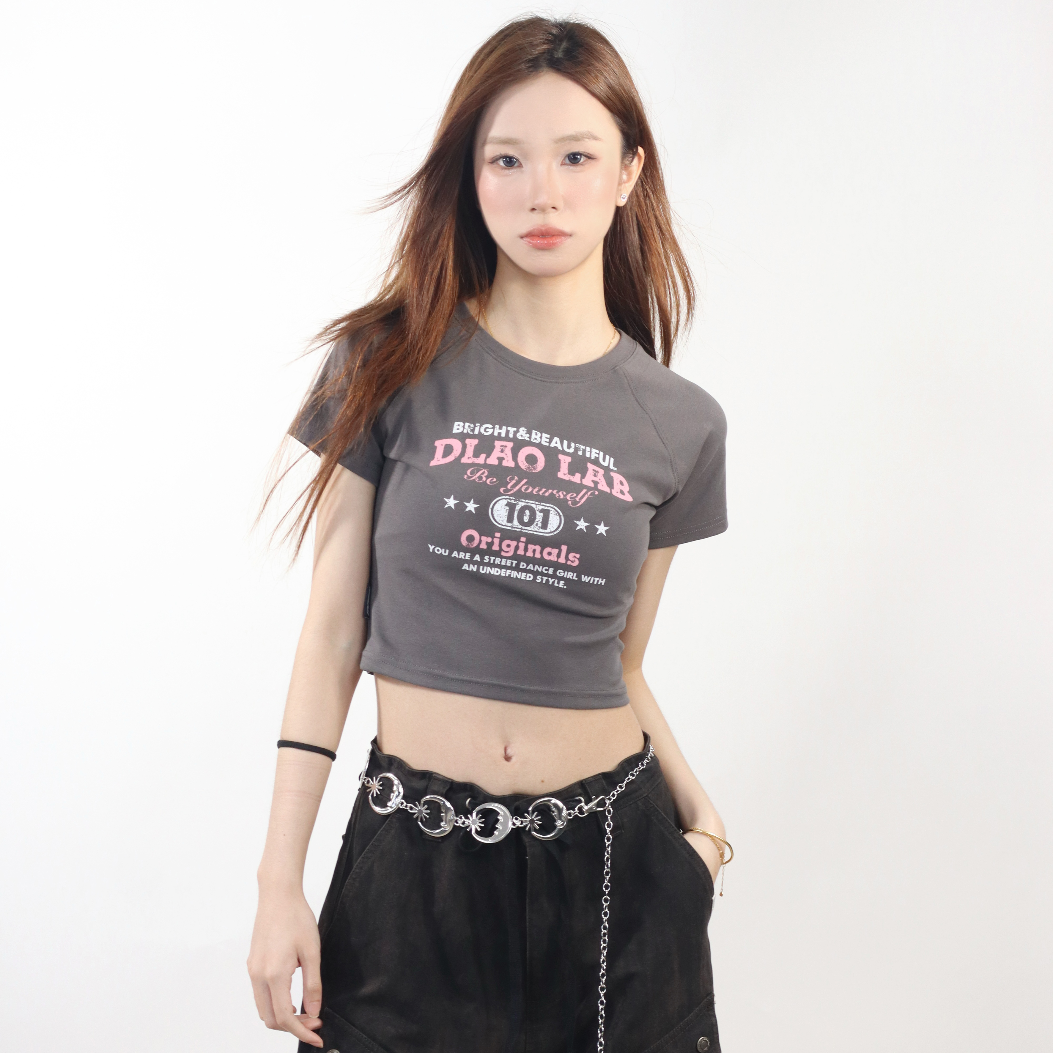 大佬街舞潮牌原创美式 英文T恤上衣复古露肚脐显瘦jazz辣妹夏8606