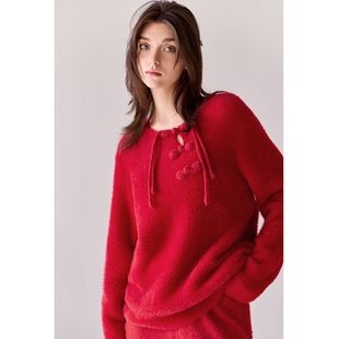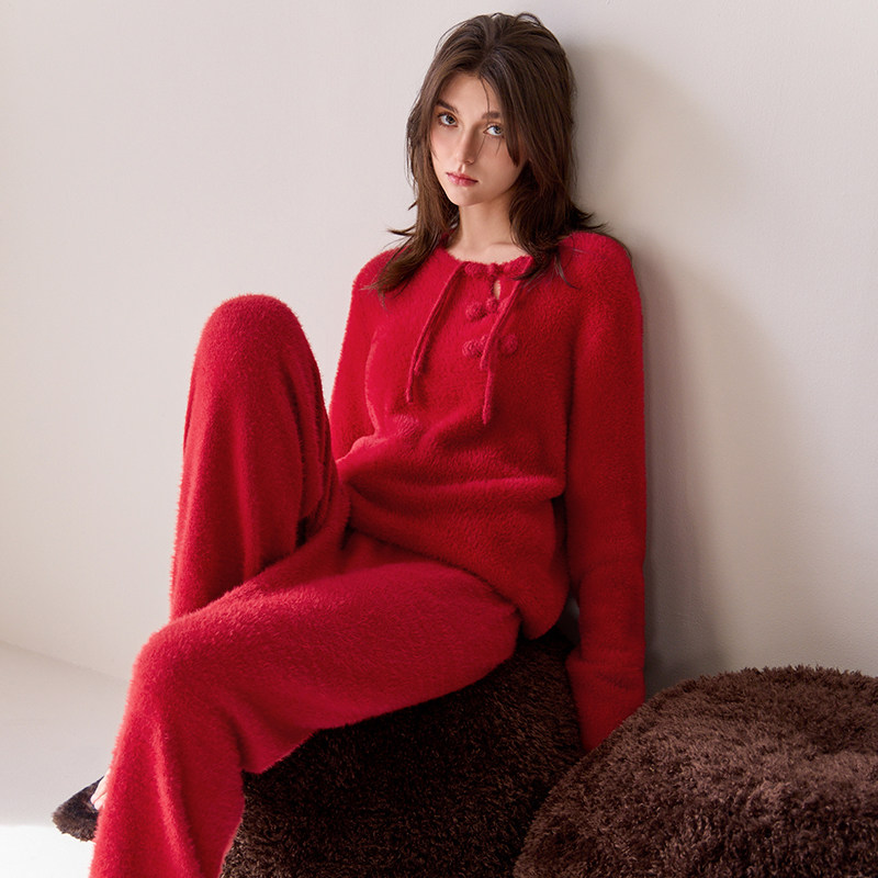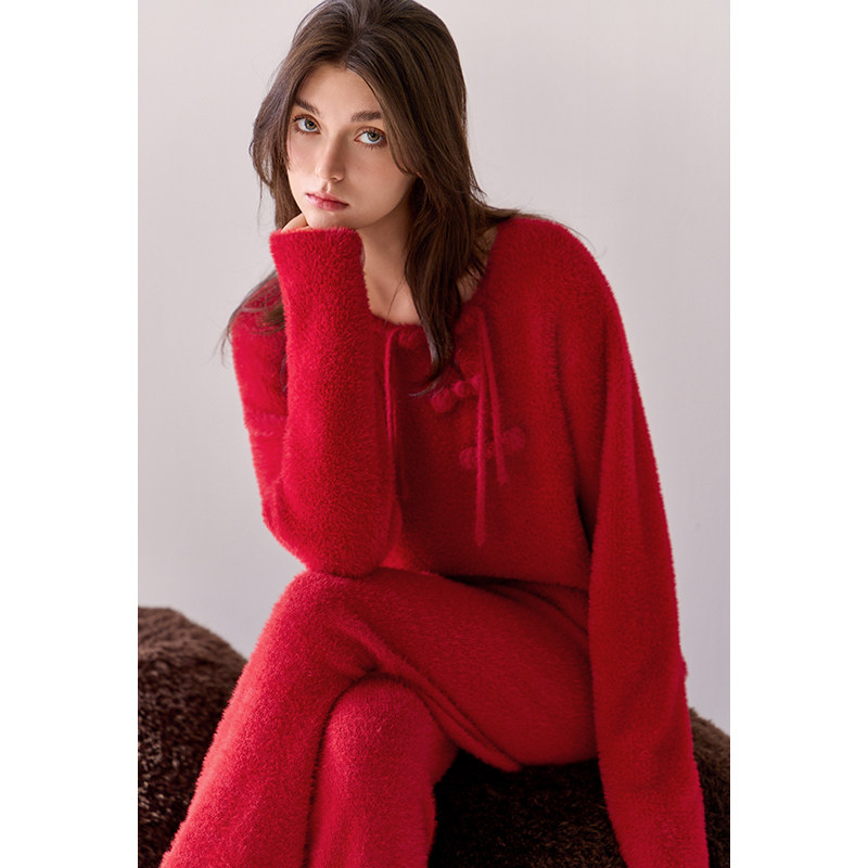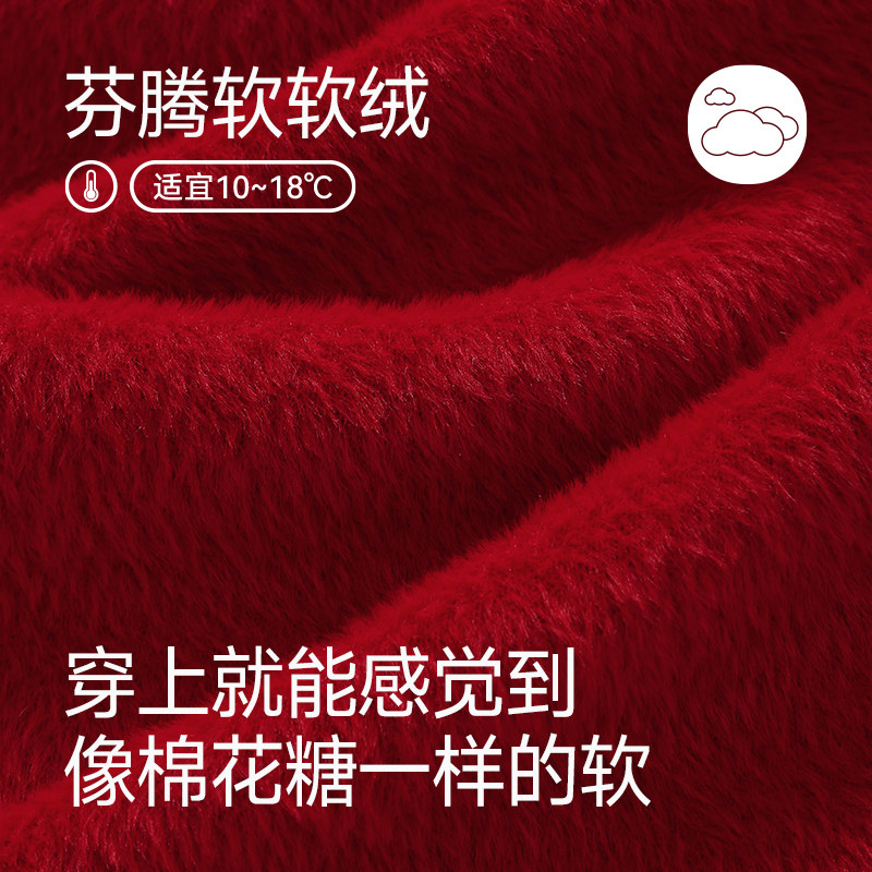 家居服 红色结婚圣诞男士 有棵树睡衣秋冬款 女半边绒本命年情侣套装
