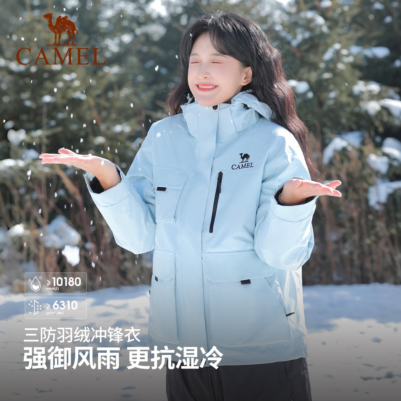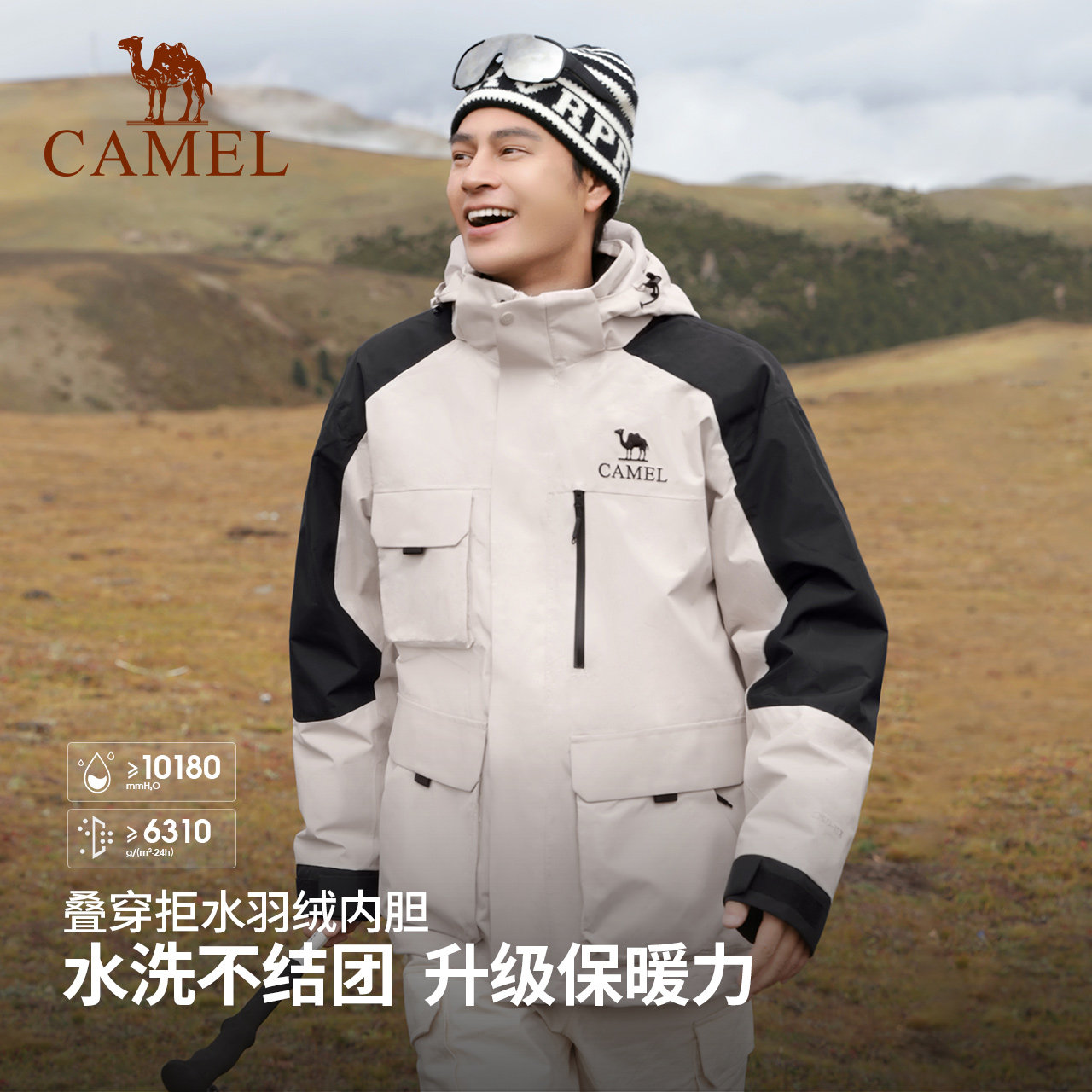 骆驼户外拒水羽绒服冲锋衣女三合一可拆卸两件套防风防水登山服男