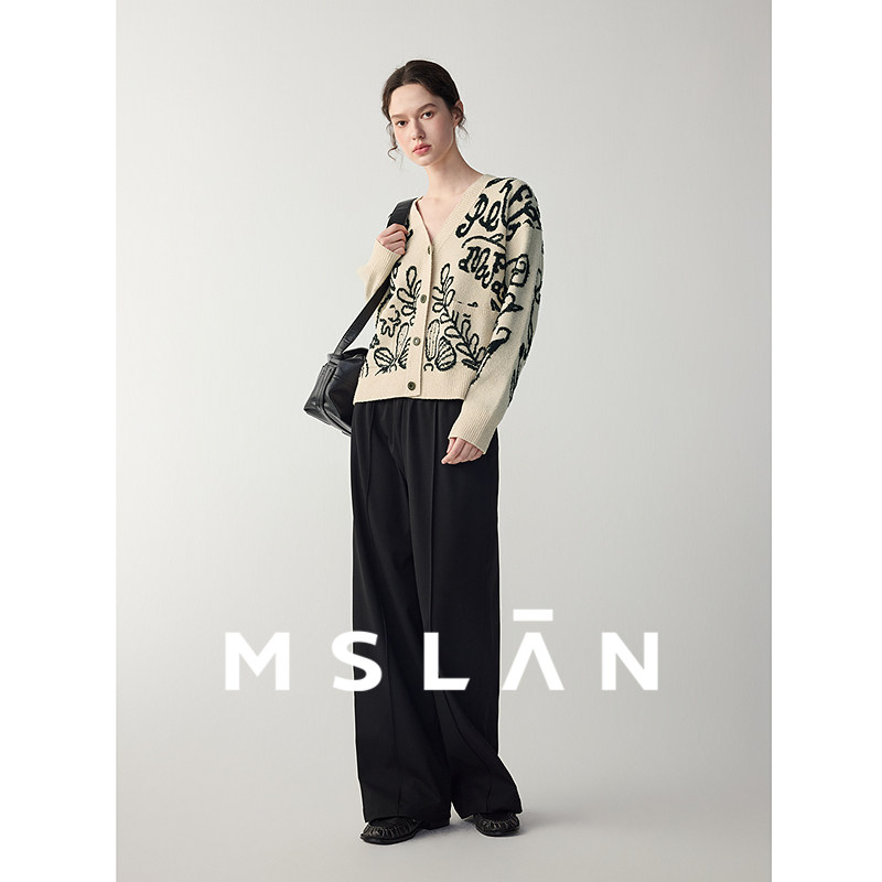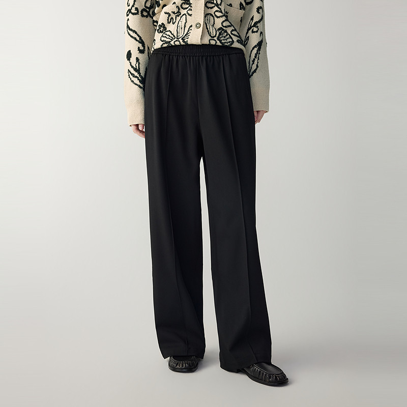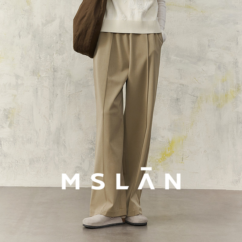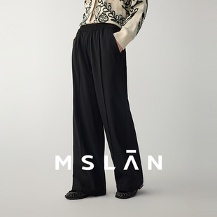垂感显瘦阔腿裤 MSLAN25秋通勤宽松半松紧腰休闲裤 磨毛内里
