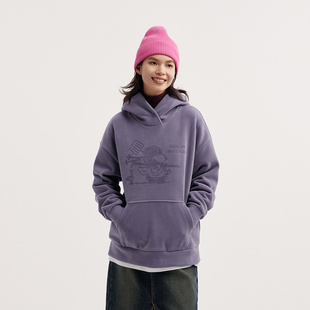 外套摇粒绒连帽上衣 冬季 森马史努比系列卫衣女中长款 假两件女装