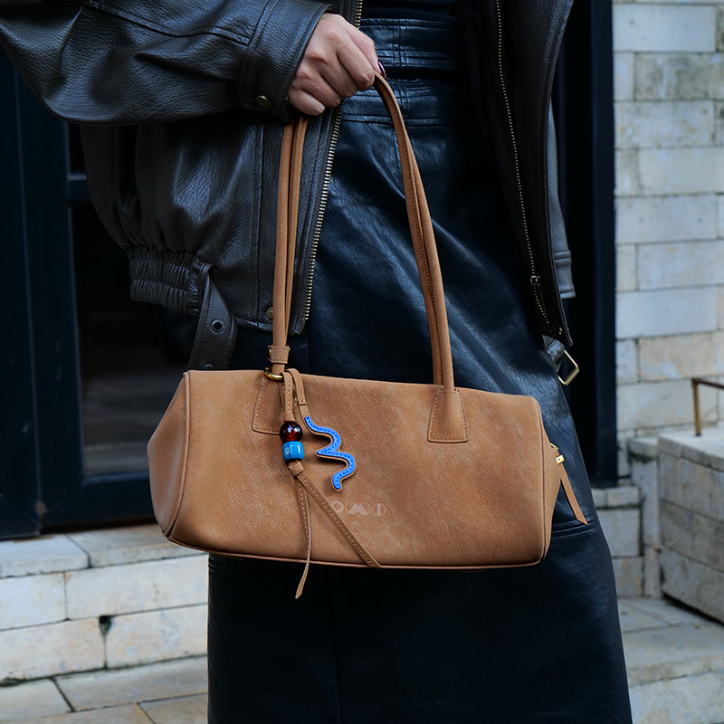 OMI欧米擦色法棍包腋下包小众新款 波士顿包保龄球包复古热狗包女