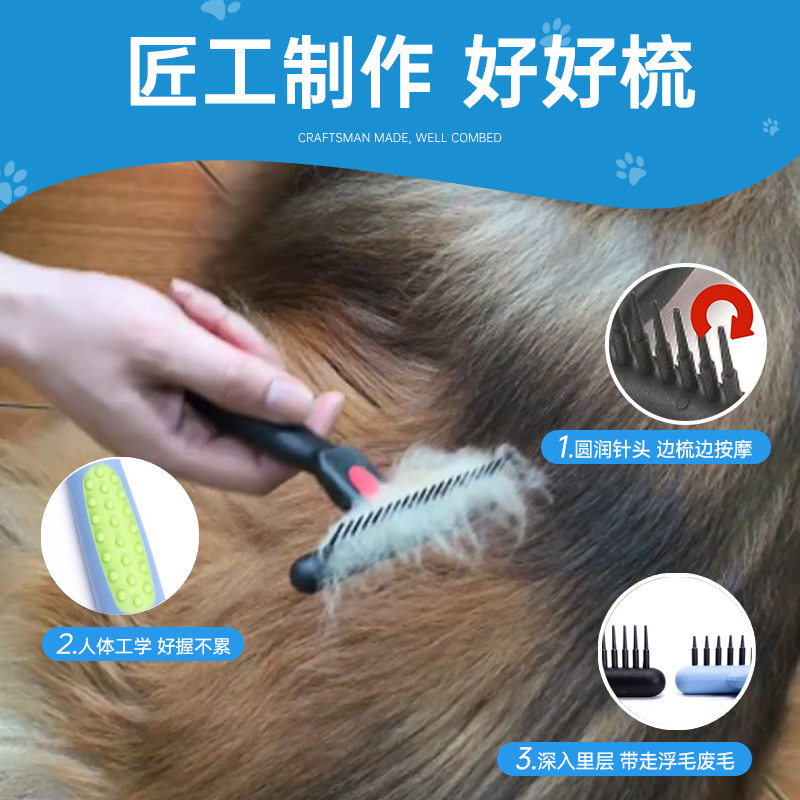 船记耙梳子猫狗大型宠物去废毛浮毛底绒神器T型钉梳T056 自营