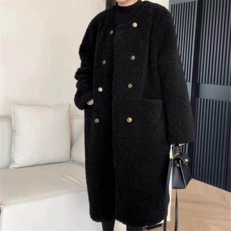 2025新款 双排扣网红颗粒绒毛呢外套女 简约宽松软糯毛毛外套中长款
