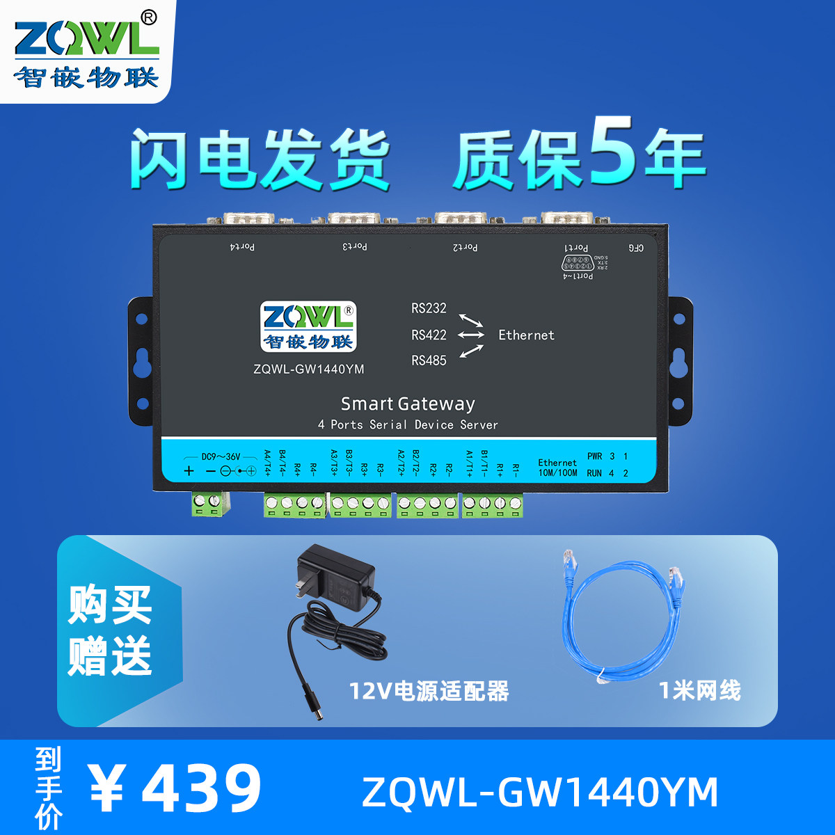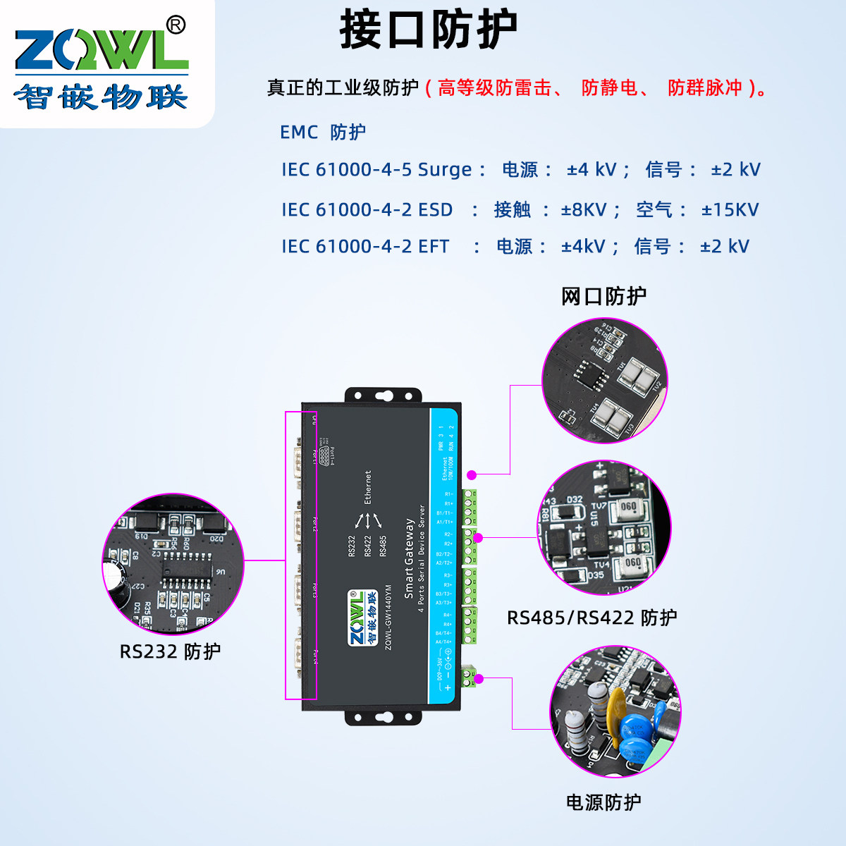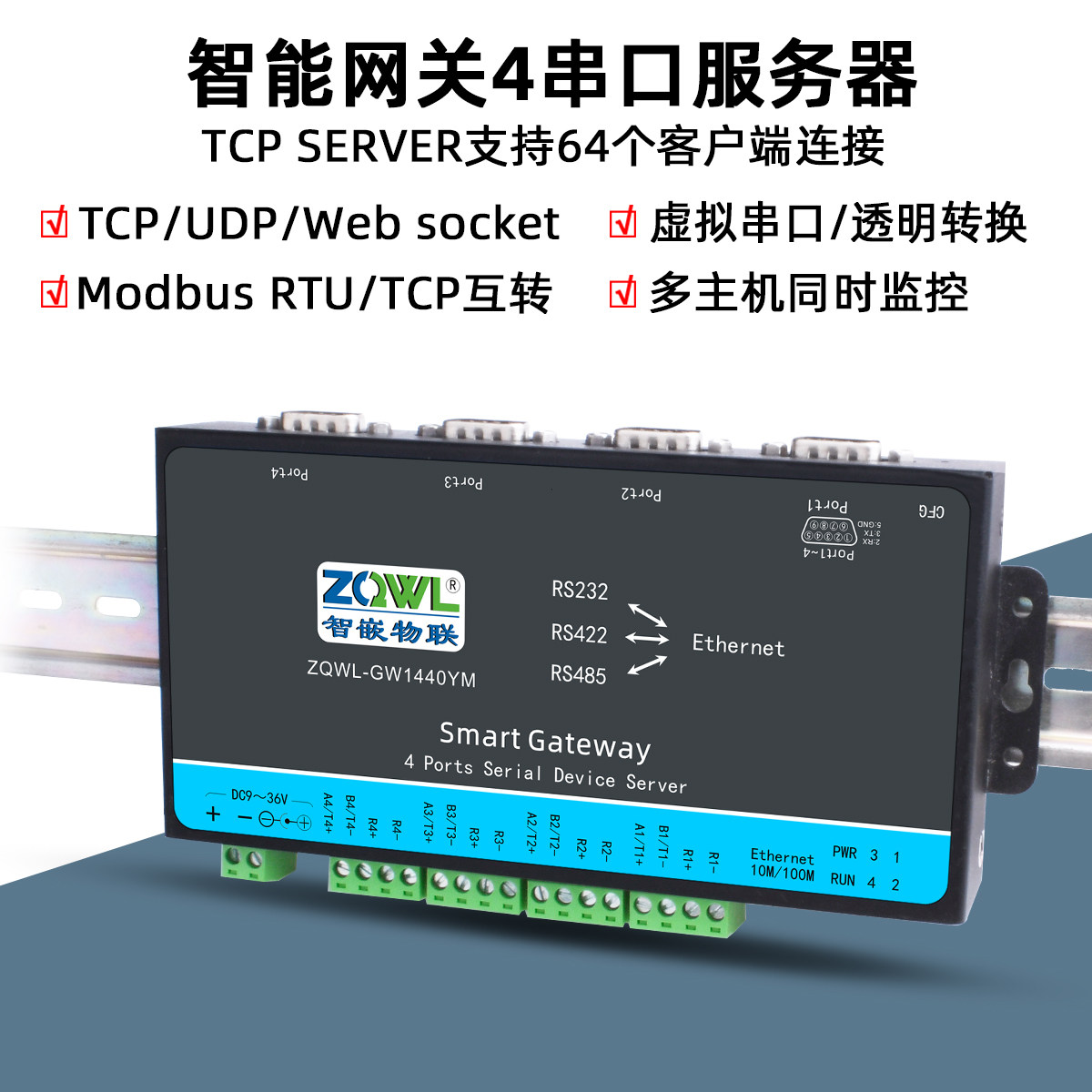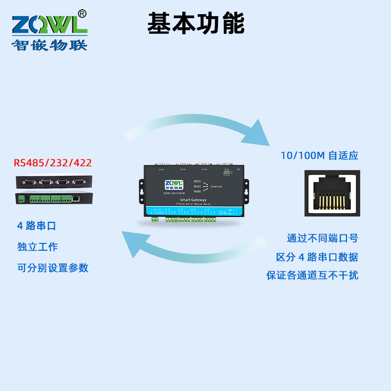 422 4路RS232 485转以太网模块串口服务器转网口Modbus网关TCP转RTU边缘计算JSON二次开发 智嵌物联
