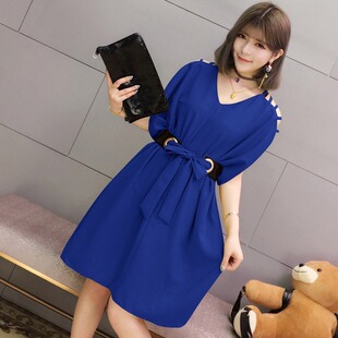 胖妹妹蝙蝠袖 加大码 新款 漏肩连衣裙2026夏装 宽松裙子200斤裙 女装