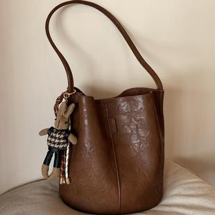 高级感美拉德包包女2025年春夏流行复古单肩腋下包通勤斜挎水桶包