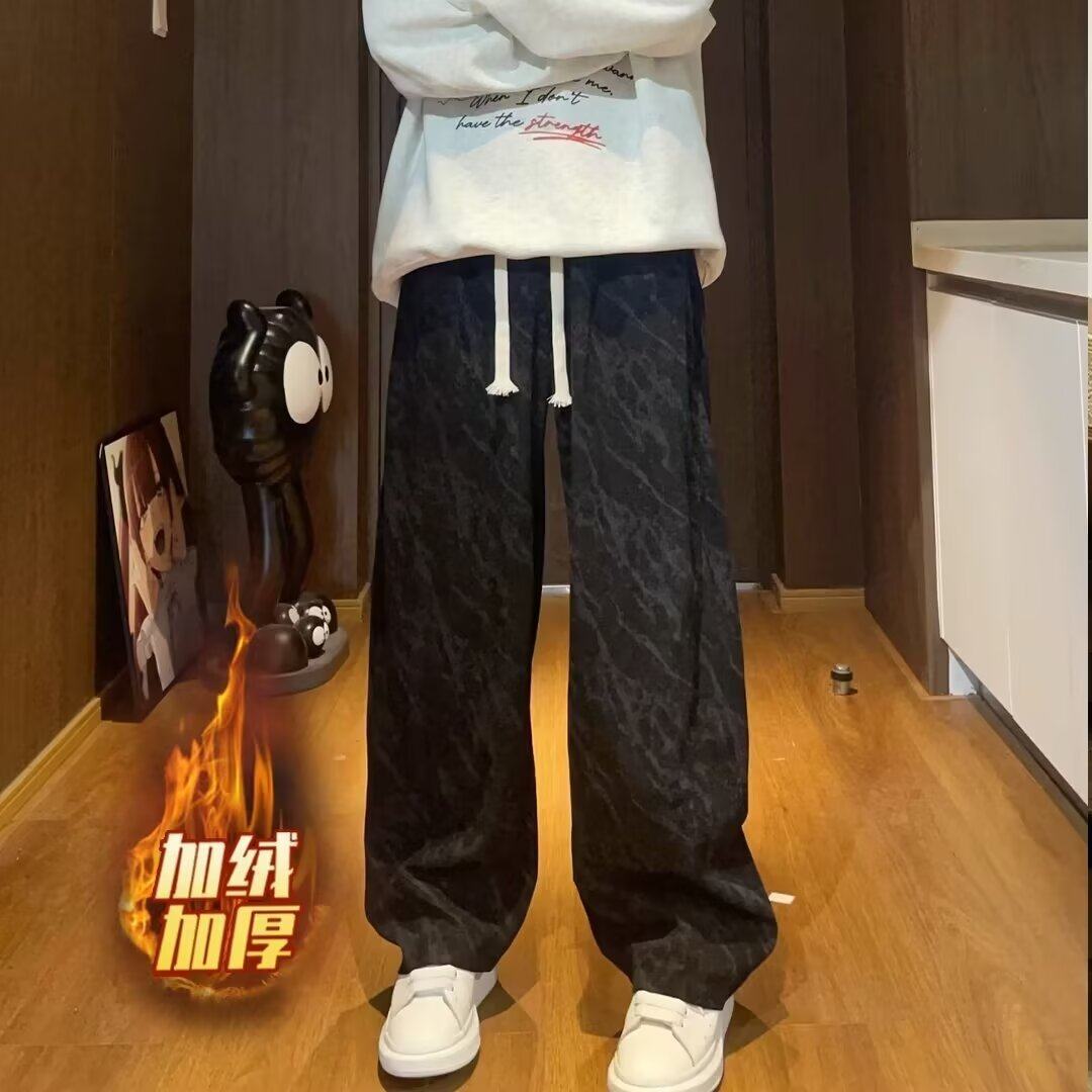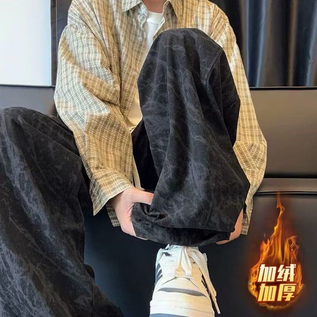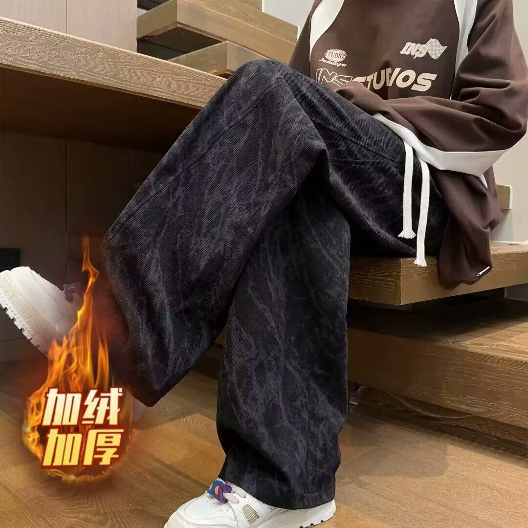脏脏裤 扎染灯芯绒裤 加绒阔腿休闲大码 直筒宽松阔腿长裤 子女秋冬款