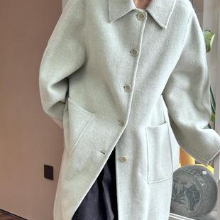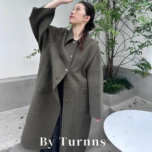 羊毛呢翻领大衣外套 turnns|橡木苔|苔绿色质感宽松慵懒长款