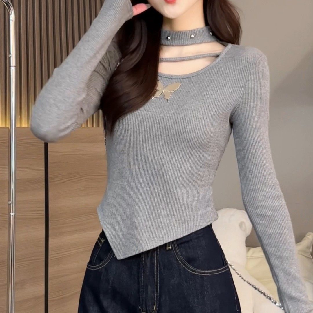 显瘦大码 小香风法式 春秋冬季 打底衫 设计感T恤女 上衣女不规则长袖