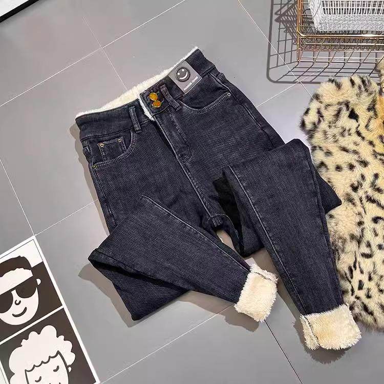 女高腰显瘦九分铅笔裤 巨好穿 加绒小脚牛仔裤 弹力修身 子 靴裤