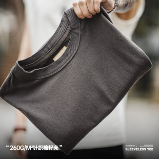 坎肩T恤男夏 白色宽肩背心重磅痞帅篮球纯棉沙滩无袖 马登工装 美式