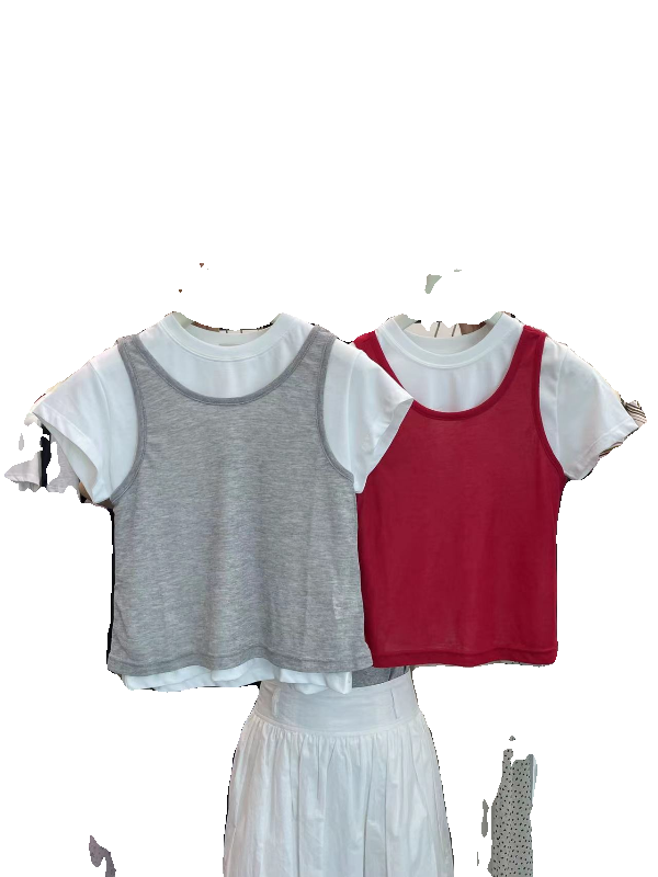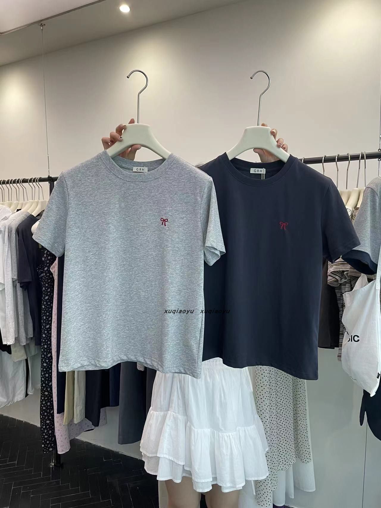 GRH2024色设计感小众常规短袖 简约甜美背心百搭上衣 正肩t恤女夏季