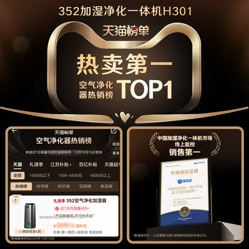 352空气加湿净化器一体机H301卧室内家用宠物母婴级除甲醛多规格