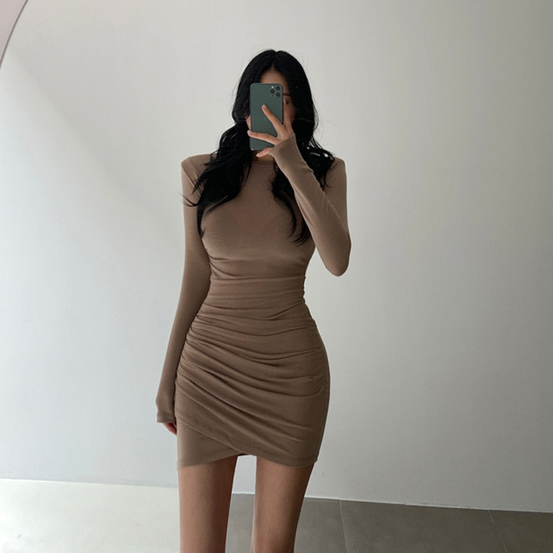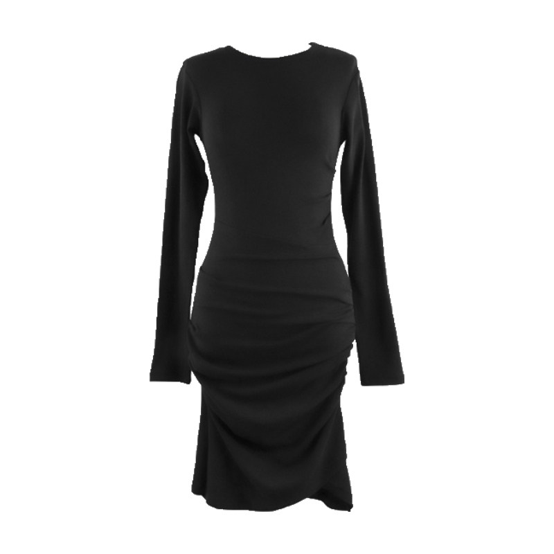 修身 长袖 今年流行爆款 2025新款 性感包臀黑色连身裙 针织连衣裙女装