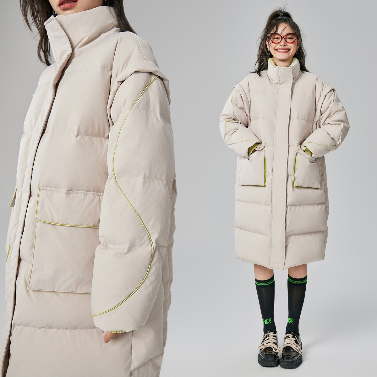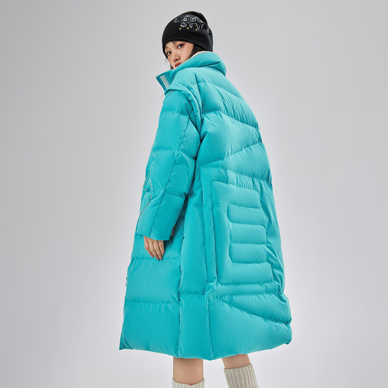 外套 冬正肩百搭方形压格羽绒服中长款 DM100大码 百分百微胖mm女装