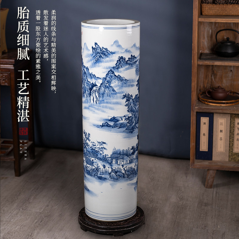 中式 饰摆件 高级感青花瓷复古陶瓷花瓶水培插花干花器皿客厅玄关装