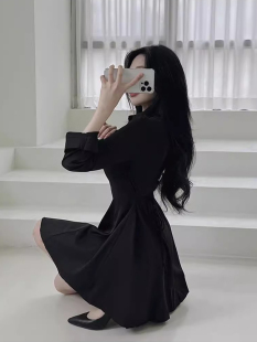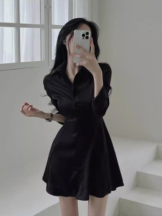气质纯色衬衫 法式 裙收腰显瘦小个子A字连衣裙女 新款 韩国chic春季