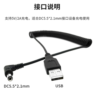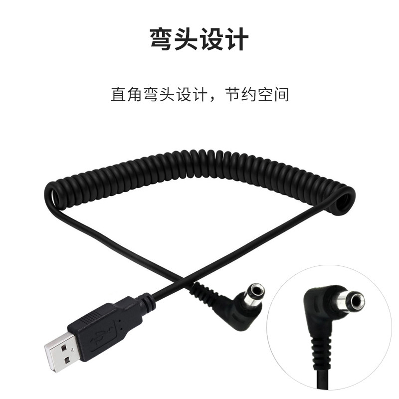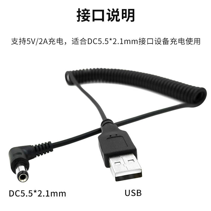 1.7mm 4.0 USB转DC5.5 2.1mm弹簧线拉伸缩充电线弯头DC圆形5V供电线圆孔小台灯路由器5521圆头5525电源线4017