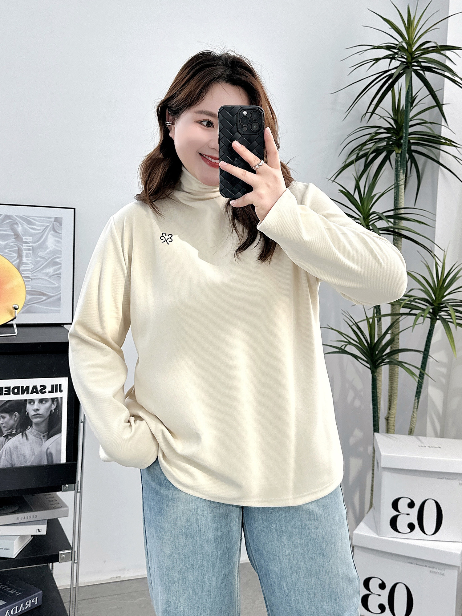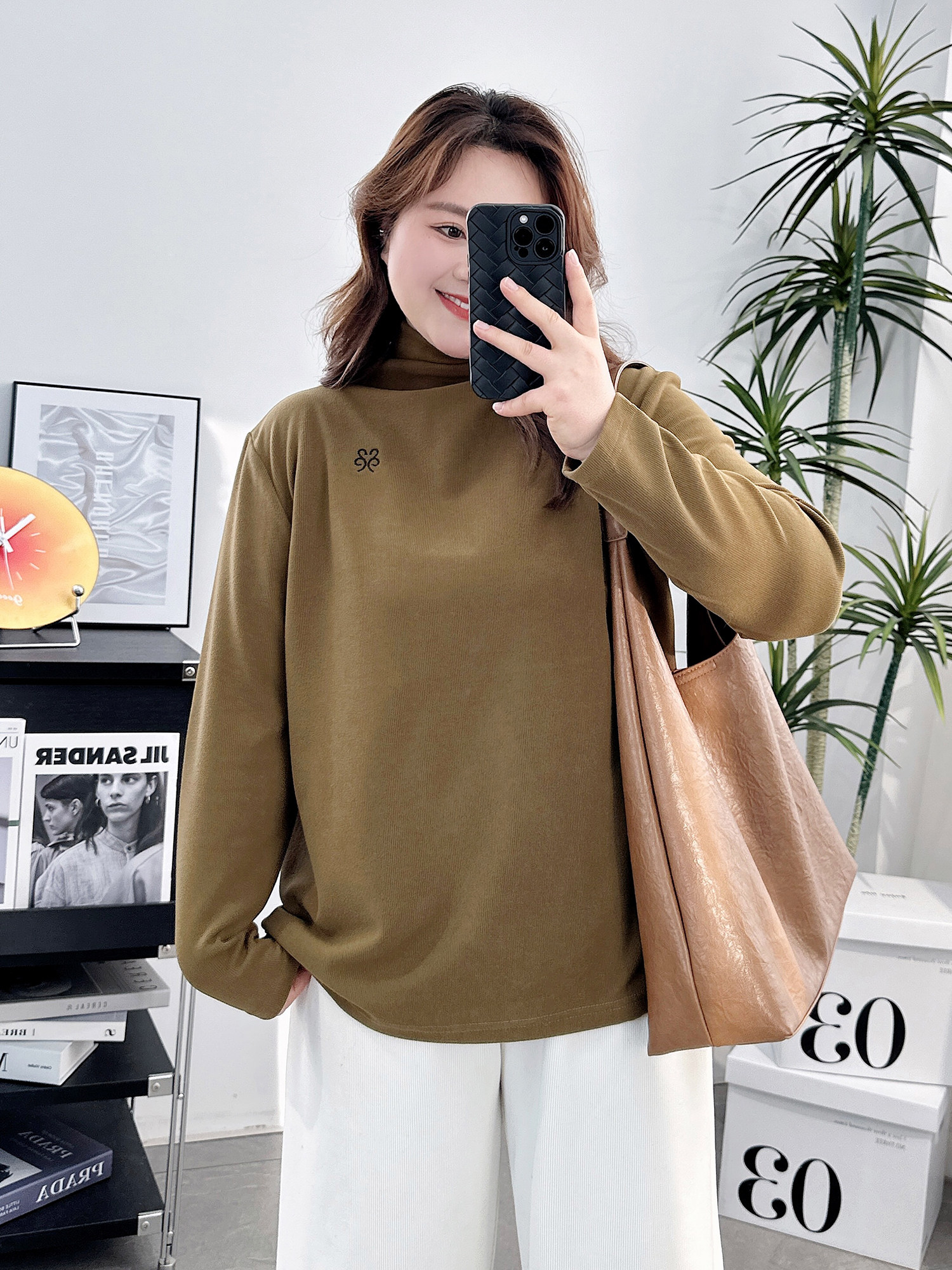 软糯弹力舒适百搭小衫 女装 内搭 木子理想大码 胖mm秋冬堆堆领打底衫