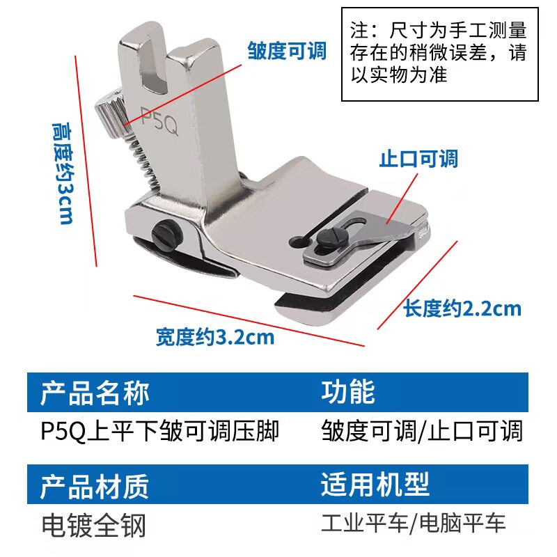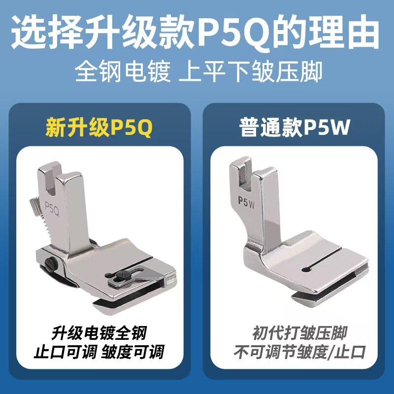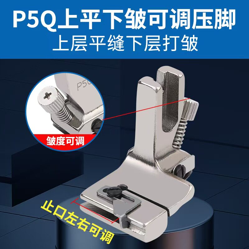 新款 P5Q平车可调打褶打皱打折缩折压脚上平下皱合缝缩皱拼缝压脚