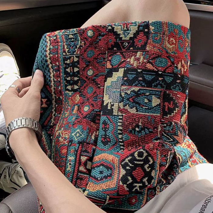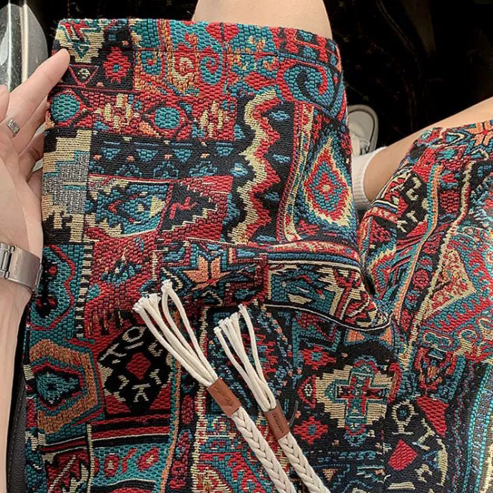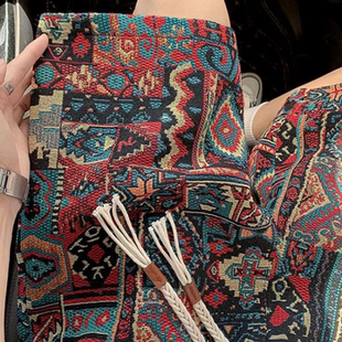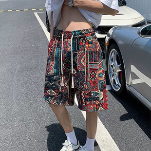 子vintage休闲沙滩裤 民族风编织短裤 印花设计感五分裤 夏季 衩 男款