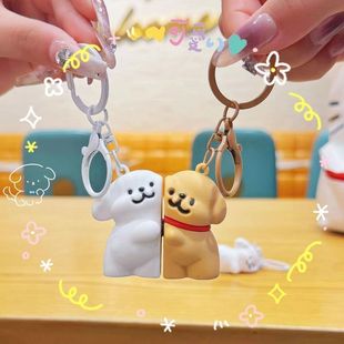 闺蜜线条小狗情侣磁吸钥匙扣创意可爱卡通书包汽车挂饰挂件礼物