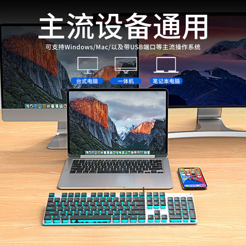 电脑2024新款 机械键盘鼠标套装 真电竞游戏商务专用静音笔记本台式