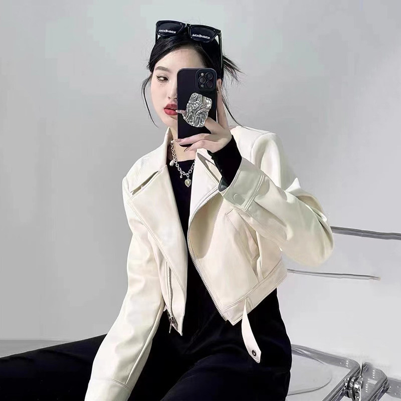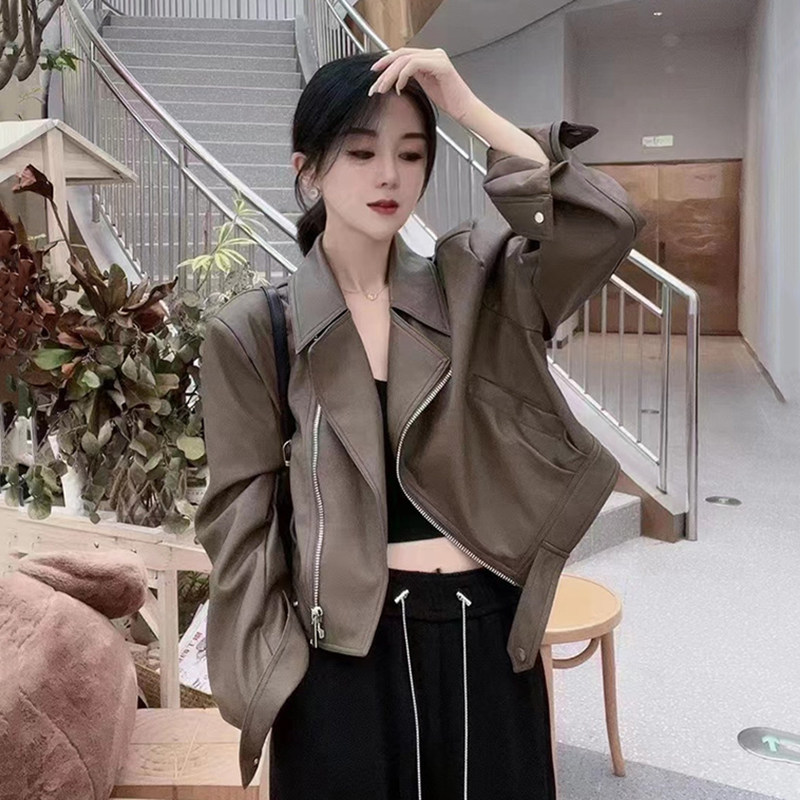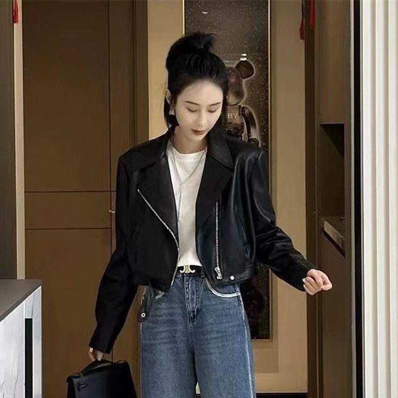 韩系蛋白皮翻领皮衣外套女春季 小个子高级感机车服皮夹克 2026新款