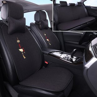 凉垫棉麻防滑简约布艺座椅垫套 通用亚麻汽车坐垫透气夏季 25款 四季