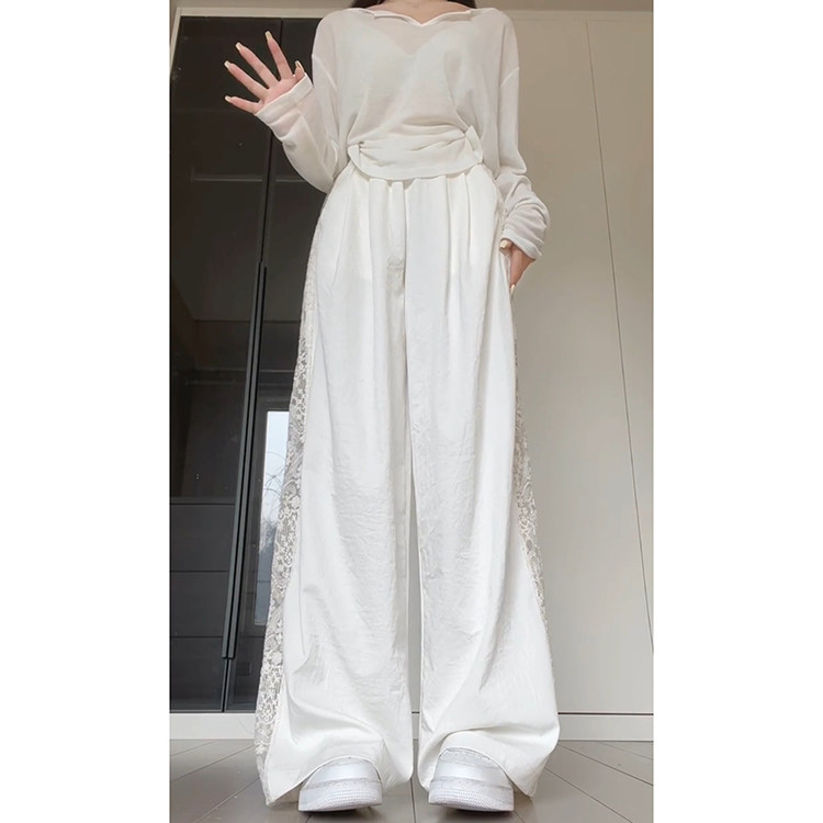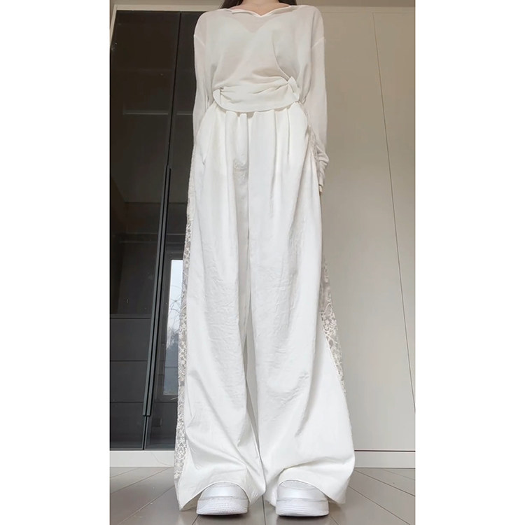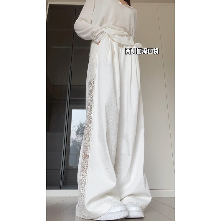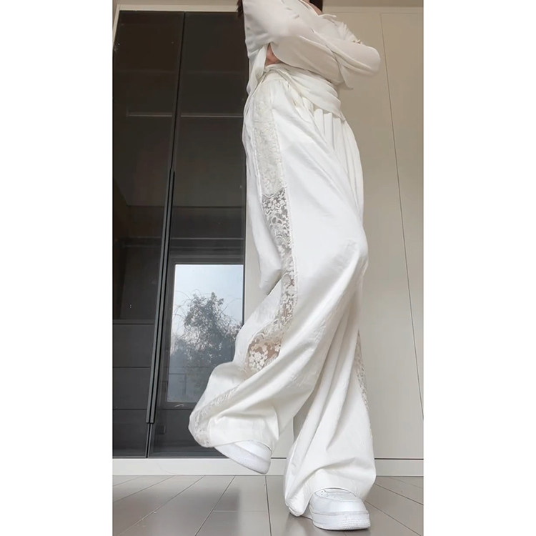 设计感小众花边休闲裤 蕾丝拼接新中式 2026新款 女春夏季 镂空阔腿裤