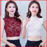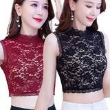 显女人味 打底衫 新款 花边蕾丝假领子女百搭秋冬半高领内搭背心女式
