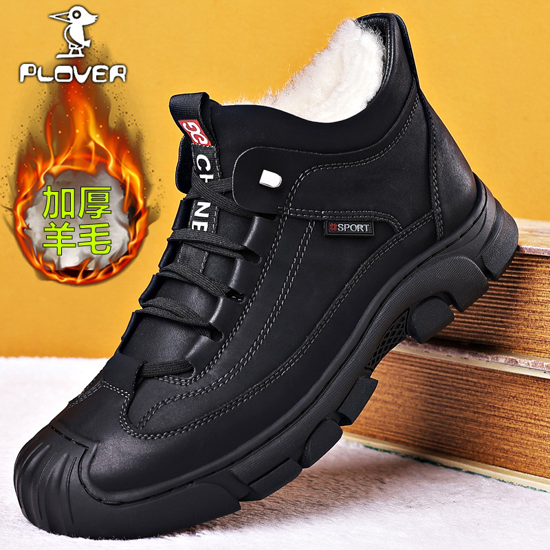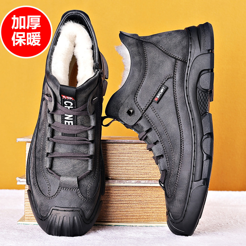 休闲鞋 冬季 皮面保暖鞋 子高帮运动鞋 鸿星尔克板鞋 加绒厚底棉鞋 男鞋