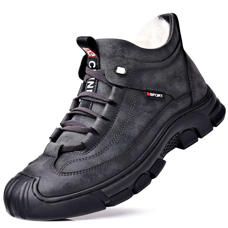 运动休闲鞋 灰色2025年冬季 厚底增高 加绒保暖男款 乔丹皮面高帮板鞋