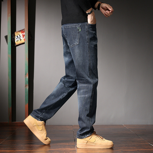 子男微喇直筒宽松原色阔腿大码 深蓝裤 原牛加绒牛仔裤 LOADMIND美式