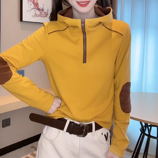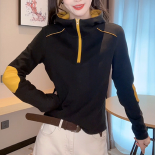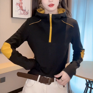 2025秋冬德绒保暖打底衫 女显瘦气质上衣 女连帽洋气半拉链拼色长袖
